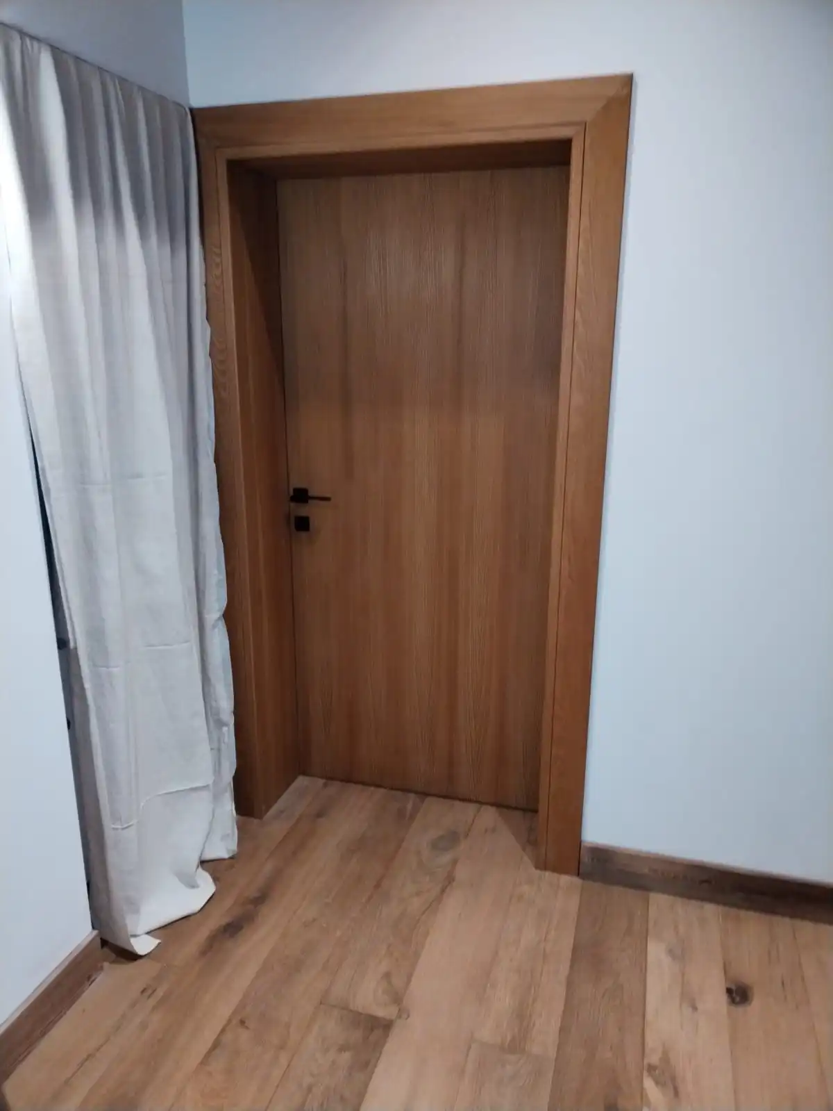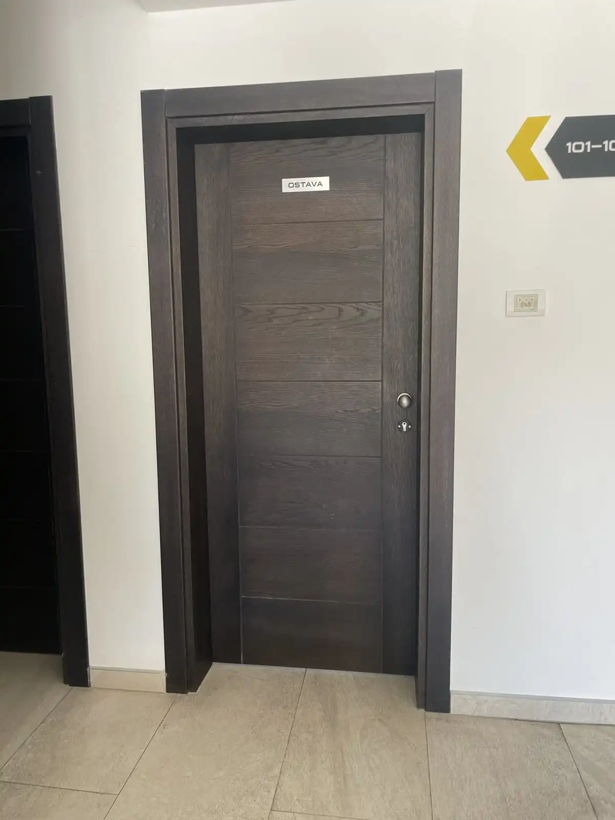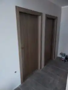 Okvir vrata izrađuje se od medijapana debljine 30mm u punoj širini zida, koja se profilira prema krilu i visećim lajsnama. Ukupan opseg štelanja po širini je 30mm. Svi elementi su presvučeni CPL folijom u dezenu tamni orah. Lajsna se izrađuje od medijapana debljine 12mm i 70-100mm. Moguća je i kombinacija dimenzija- vertikalne lajsne 70-100mm, a horizontalne 100mm. Lajsna je presvučena CPL folijom u dezenu tamni orah i ima opseg štelanja 30mm. Krilo vrata je dupla šper ploča sa medijapanom debljine 4 mm presvučeno CPL folijom u dezenu tamni orah. Unutrašnjost krila je ispunjena kartonskim saćama ili cjevastom ispunom. Ram na vratnom krilu izrađuje se od medijapana to jest profilliranih štafni 34*30mm u dva reda. Debljina krila je 42mm. Tako izrađeno krilo se formatizira na zadanu mjeru zatim se kanta CPL folijom sa kojom je obložen i postavlja odgovarajući okov