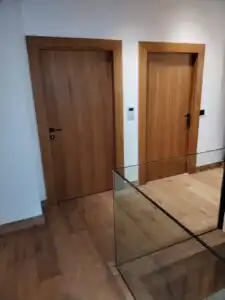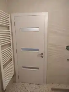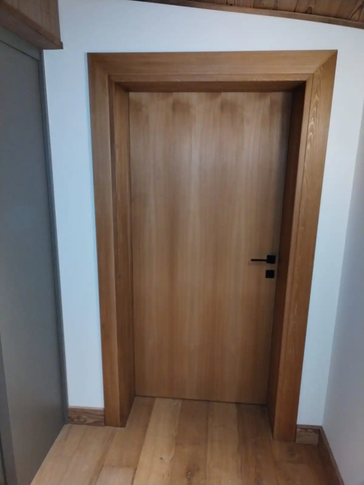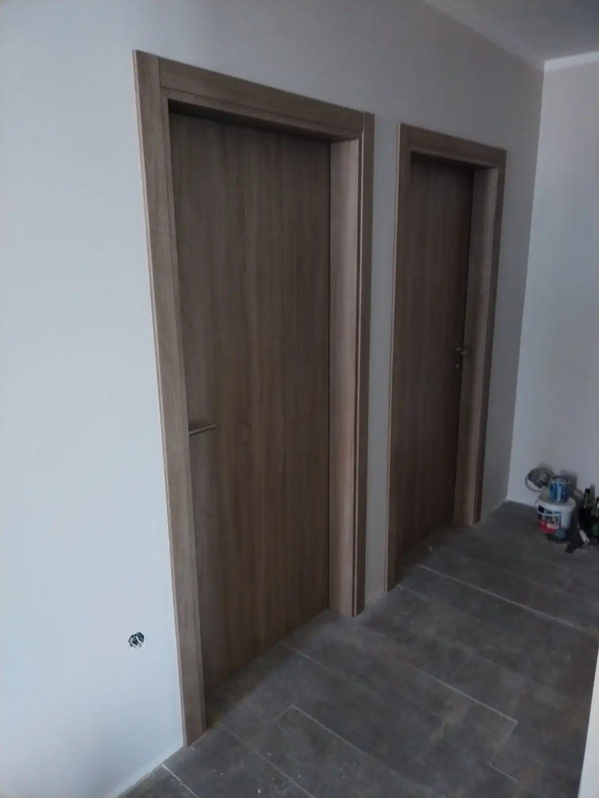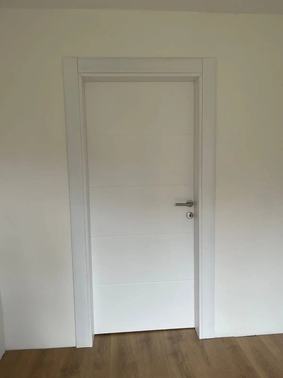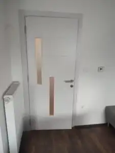 Okvir vrata izrađuje se medijapana debljine 30mm u punoj širini zida, koja se profilira prema krilu i visećim lajsnama. Ukupan opseg štelanja po širini je 30mm. Svi elementi su farbani poliuretanom u bijeloj boji. Lajsna se izrađuje od medijapana debljine 12mm i 70-100mm. Moguća je i kombinacija dimenzija- vertikalne lajsne 70-100mm, a horizontalne 100mm. Lajsna je farbana poliuretanom u bijeloj boji i ima opseg štelanja 30mm. Krilo vrata je dupla šper ploča obložena medijapanom debljine 4 mm. Unutrašnjost krila je ispunjena kartonskim saćem ili cjevastom ispunom. Ram na vratnom krilu izrađuje se od medijapana to jest profilliranih štafni 34*30mm u dva reda. Debljina krila je 42mm. Tako izrađeno krilo se formatizira na zadanu mjeru zatim se farba poliuretanom u bijeloj boji te se postavlja odgovarajuči okov.