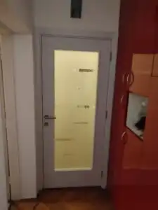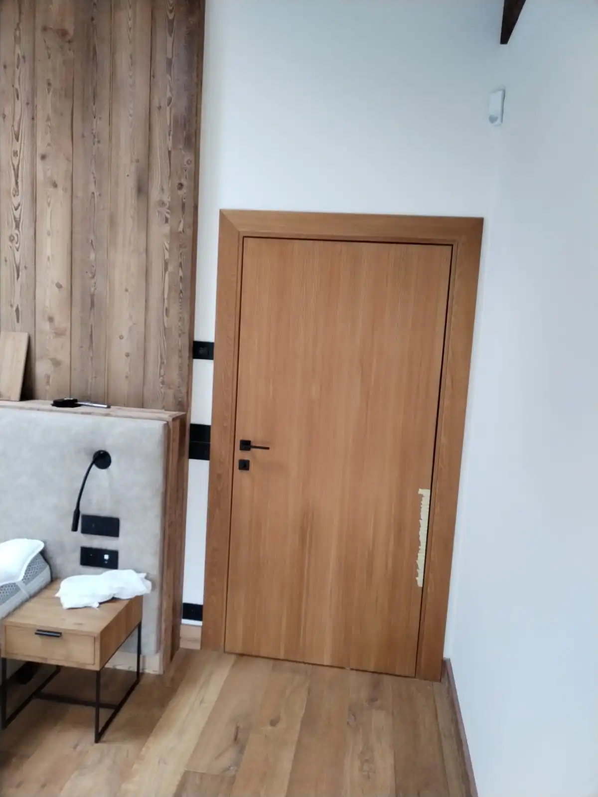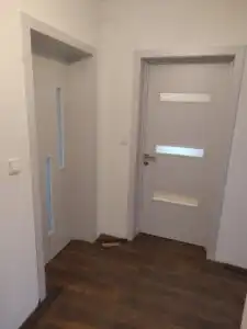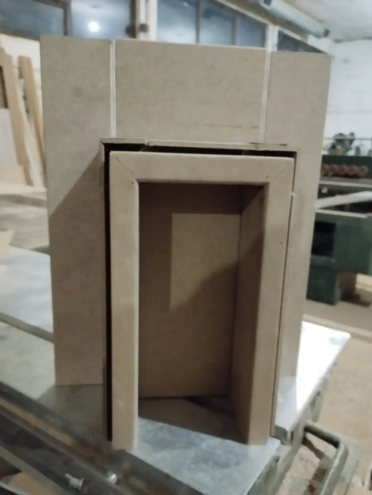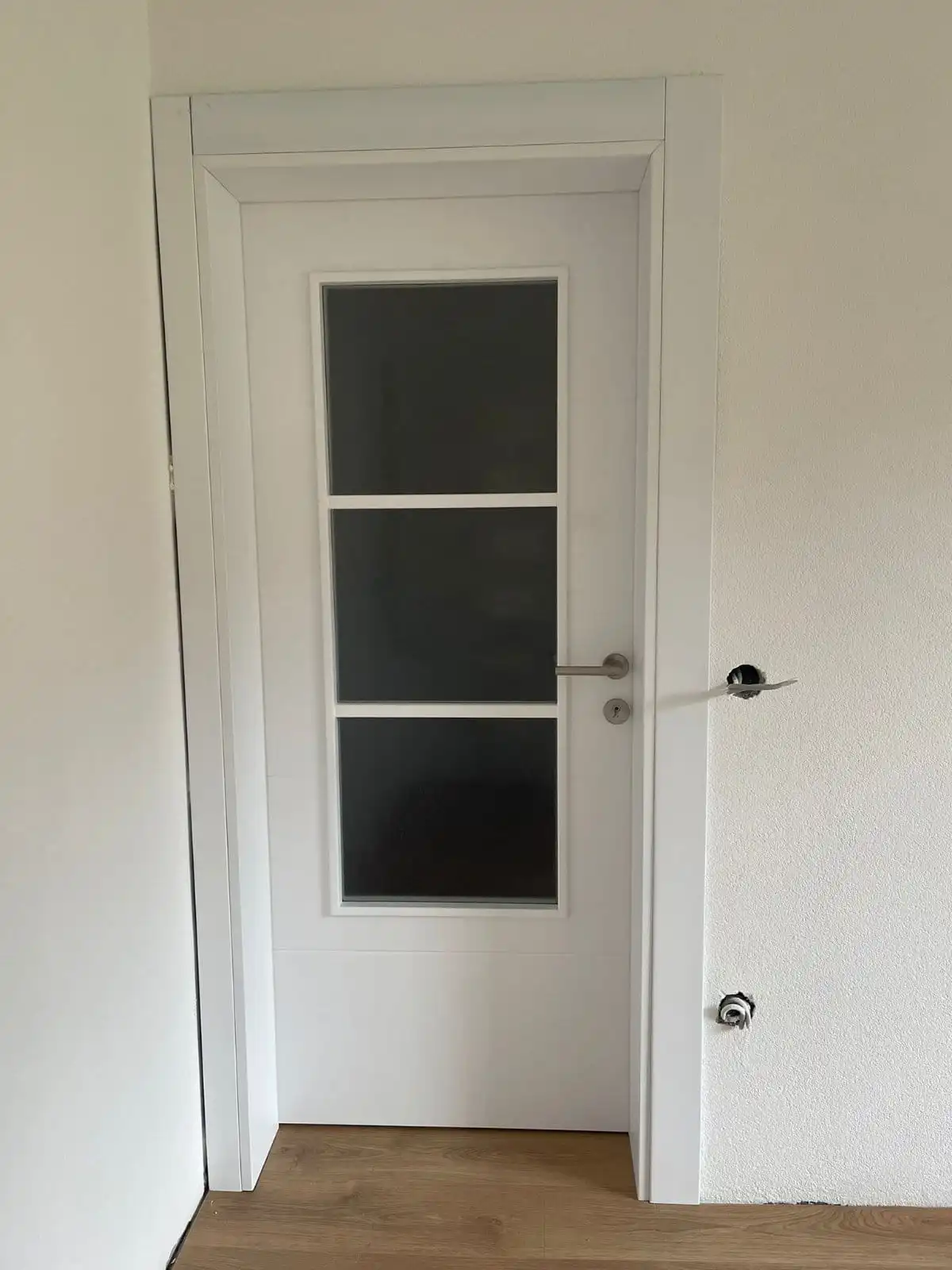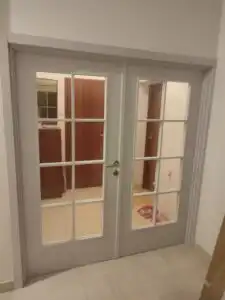 Okvir vrata izrađuje se medijapana debljine 30mm u punoj širini zida, koja se profilira prema krilu i visećim lajsnama. Ukupan opseg štelanja po širini je 30mm. Svi elementi su farbani poliuretanom u bijeloj boji. Lajsna se izrađuje od medijapana debljine 12mm i 70-100mm. Moguća je i kombinacija dimenzija- vertikalne lajsne 70-100mm, a horizontalne 100mm. Lajsna je farbana poliuretanom u bijeloj boji i ima opseg štelanja 30mm. Krilo vrata je dupla šper ploča obložena medijapanom debljine 4 mm. Unutrašnjost krila je ispunjena kartonskim saćem ili cjevastom ispunom. Ram na vratnom krilu izrađuje se od medijapana to jest profilliranih štafni 34*30mm u dva reda. Debljina krila je 42mm. Tako izrađeno krilo se formatizira na zadanu mjeru zatim se farba poliuretanom u bijeloj boji te se postavlja odgovarajuči okov.